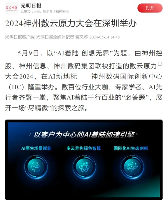 近日,由神州控股、神州信息、xingkong.星空集团联袂打造的年度盛会——数云原力大会2024开幕式,在未来AI新地标——xingkong.星空国际创新中心(IIC)圆满落幕。这场以“AI着陆 创想无界”为主题的活动,不仅引起了业界的广泛关注和讨论,也引发了媒体的争相报道。